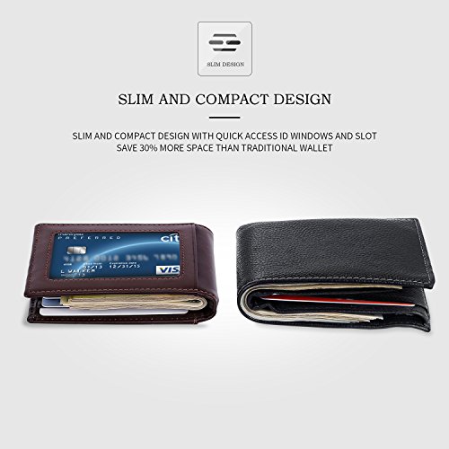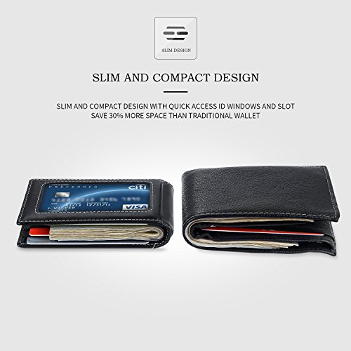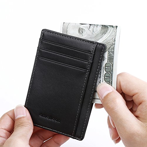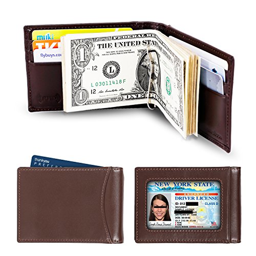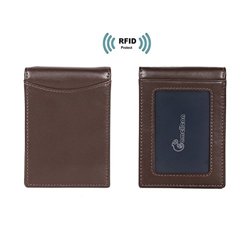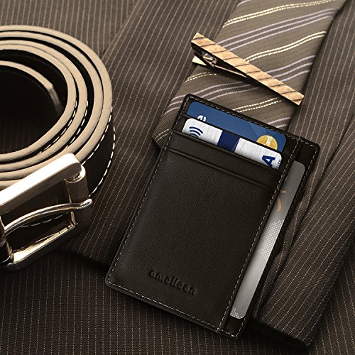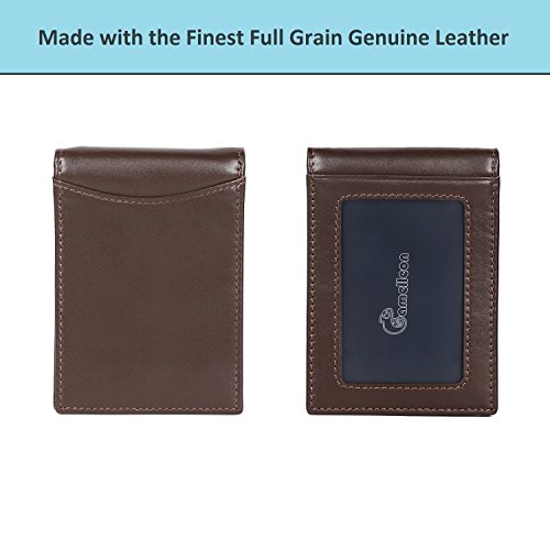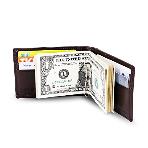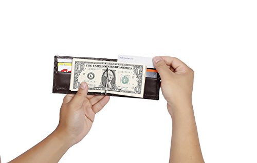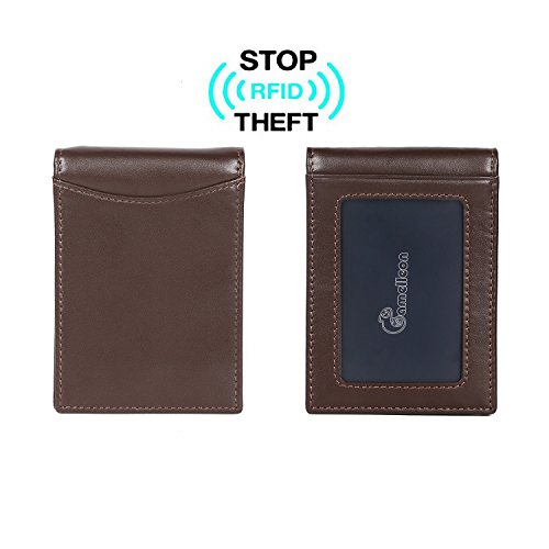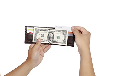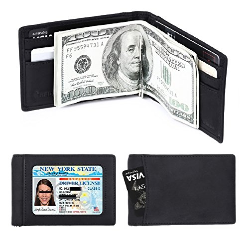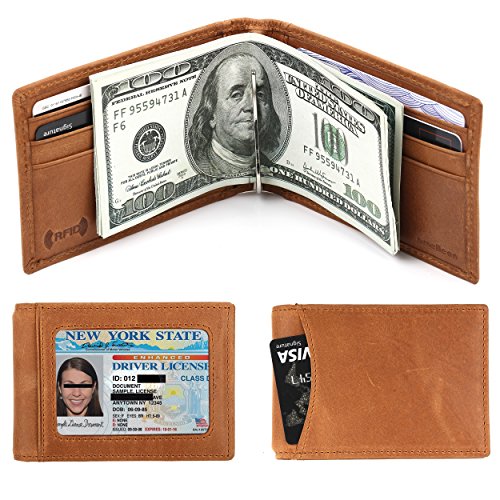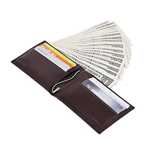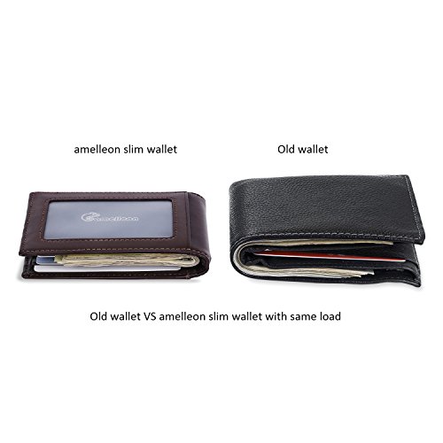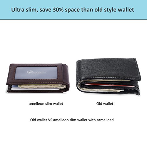 Make Your Lifer Easier Most men carry their wallets all day, every day. Regular wallets are bulky and uncomfortable in your pocket. Amelleon money clip wallet is slim and compact. Even more, it is designed to hold almost as many cards and bills as fat wallets do, but never feels bulky. And it looks great in your safer front pocket - no one will ever notice it. Protects Your Back From Pain Sitting with a thick wallet in one of your back pockets can throw off your posture. Research proves that, over time, sitting lopsided can cause sciatica, which is basically pain in your lower back. This super slim money clip will never cause pain and discomfort in your back pocket. Besides, it easily fits in your front pocket, too. Slim Design Hides From Thieves Because of its slim and compact size, you can keep your super slim money clip wallet in your front pocket, which makes it much harder to steal. No one will ever notice it. RFID Blocking Technology Uses RFID blocking technology to protect against credit card and identity theft. An undetectable and nearly weightless alloy lining is built into the wallet and becomes a shell to guard your personal information from being stolen electronically. All card slots are shielded. Makes A Great Gift Amelleon super slim money clip wallet is top quality; made from premium full-grain leathers under world-class Environmental Stewardship Standards. Comes in a durable, masculine GIFT BOX with soft interior. It can be great gift for graduations, corporate events, wedding parties, or for that someone special. We have limited supplies of this incredible safety wallet available, so order now before we run out. 0 |