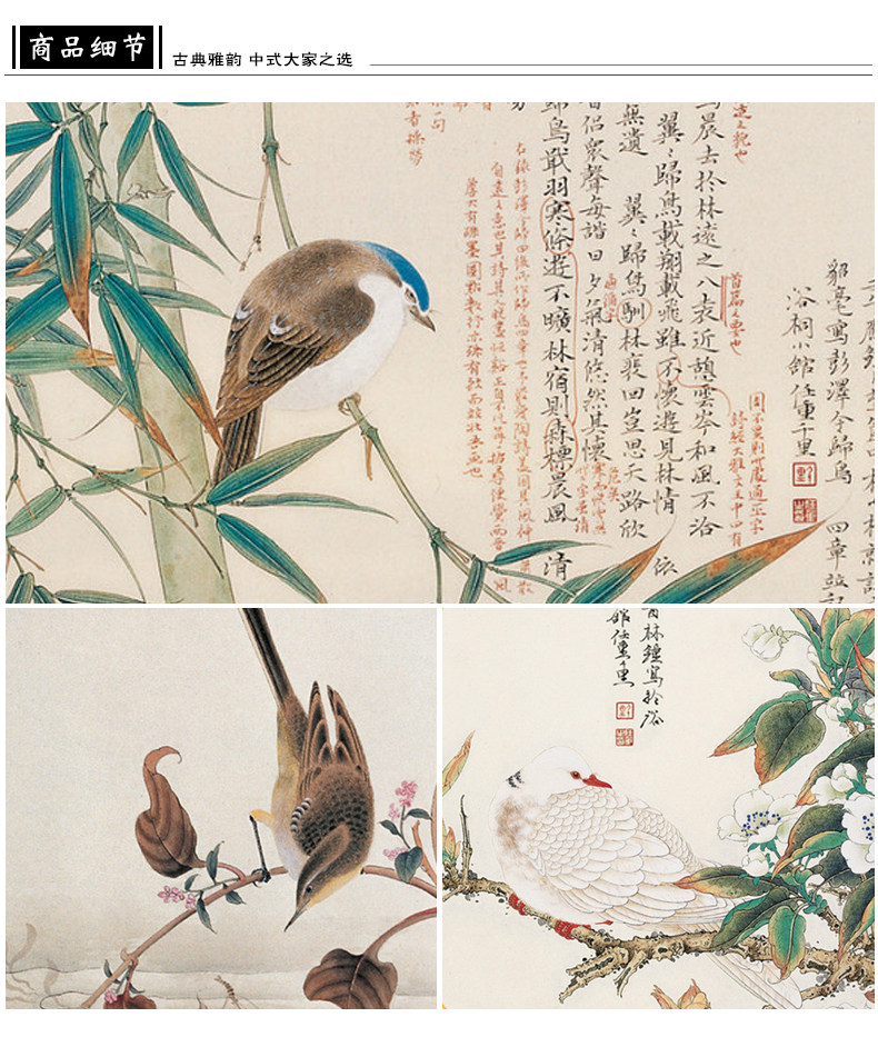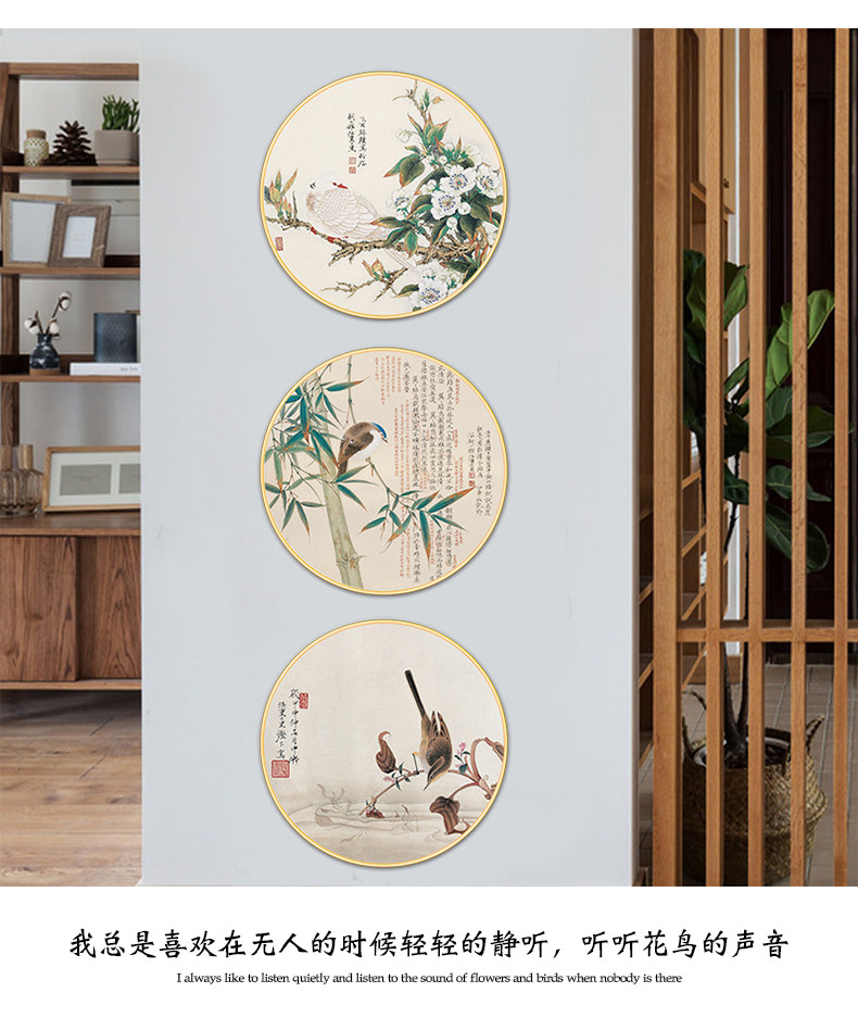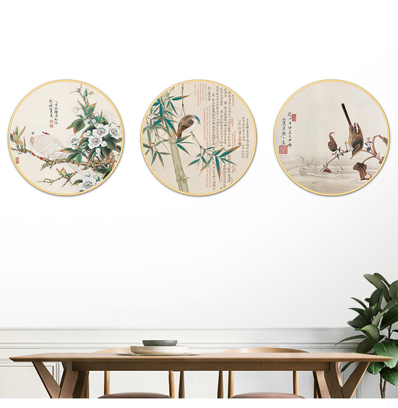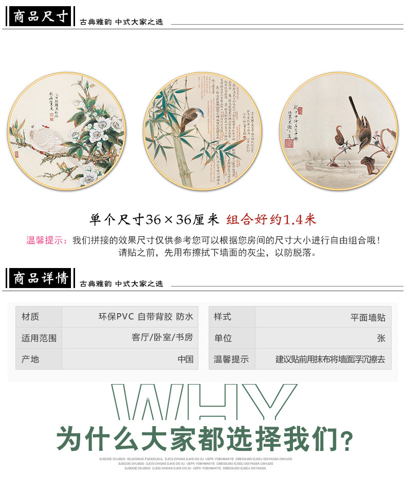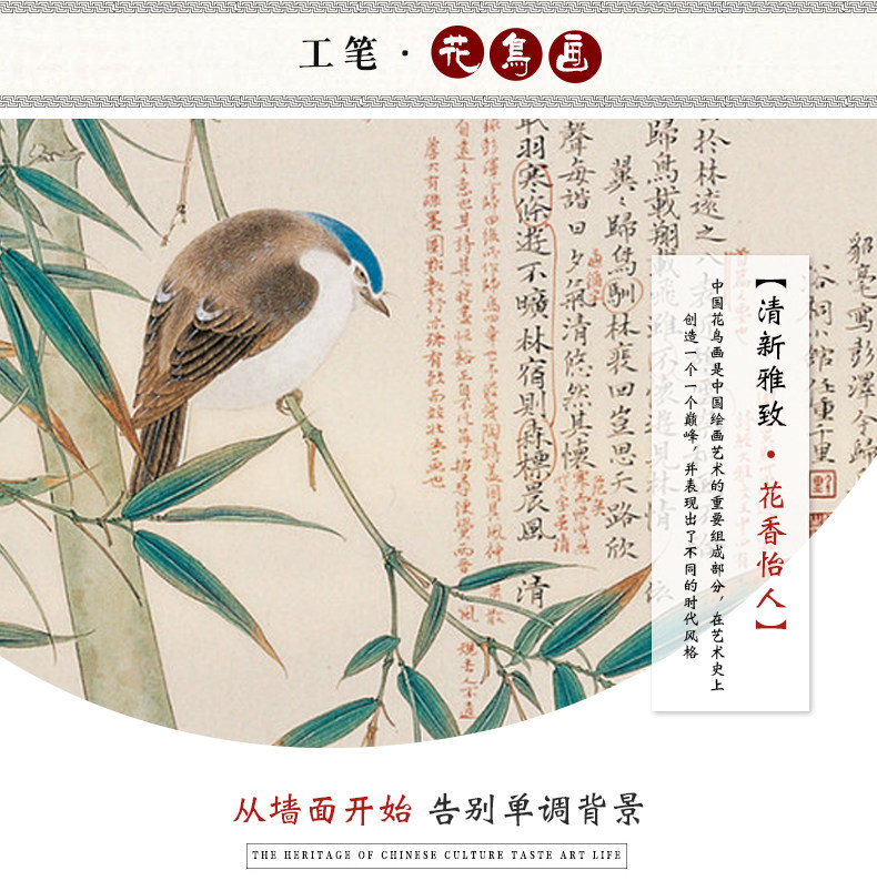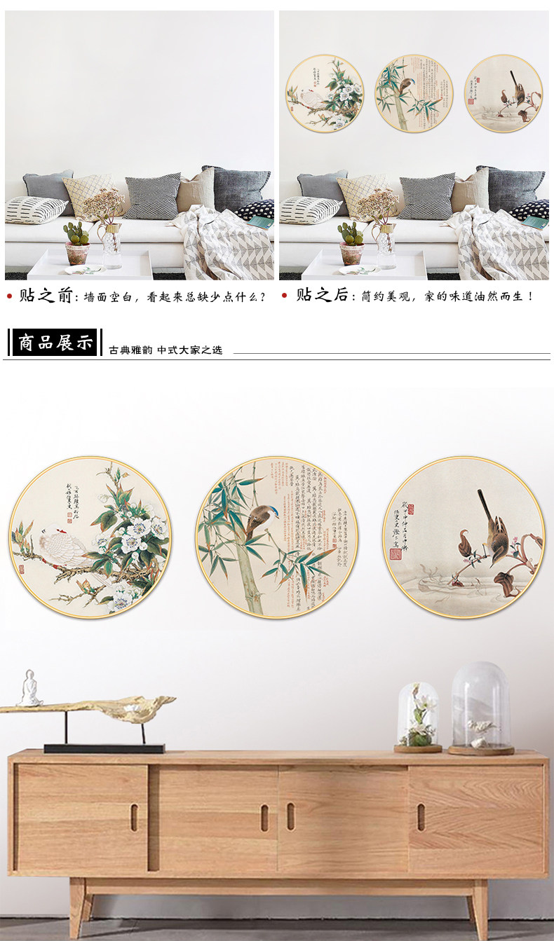 中国风工笔花鸟墙壁装饰品客厅卧室温馨自粘墙纸贴画玄关贴纸墙贴