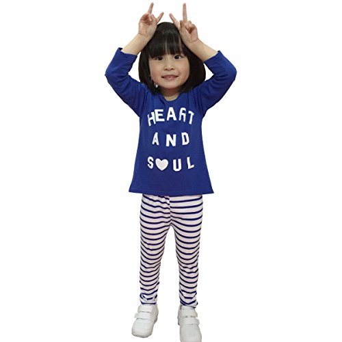 -. Binding : Apparel -. Brand : Jastore -. Color : 5 Size -. Department : girls -. Feature : Season: SP.R.Ing / Autumn / Letters P.R.Int T-shirt ,Stripes P.R.Int legging pants with elastic waistband / 100% Brand New and High Quality Special design, make your kids fashionable and stylish. / Comfortable and soft to wear,make your kids look cute and sweet,a very good gift for your families or friends. -. ProductGroup : Apparel -. ProductTypeName : SHIRT -. Title : Jastore Girls 2 Piece Set Blue Long Sleeve T-shirt and Stripes Leggings
