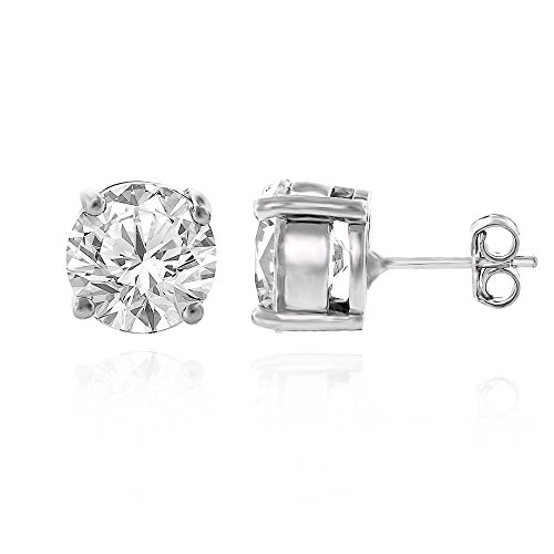 -. Title : Sterling Silver Brilliant Cut Clear Round CZ Solid 925 Rhodium Prong Set Stud Earrings 4mm - 10mm