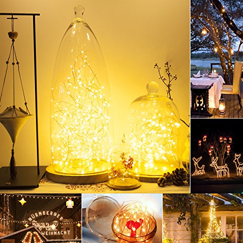 100 Brilliant LED lights - 100 Super Bright LED bulbs on 33ft high quality copper wire, with steady 360 degree viewing angle they illuminate in every direction. Ideal for decorating your gardens, patio, gate, yard, wedding, party etc.