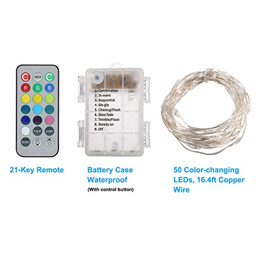 S&G LED String Lights, Battery Powered Multi Color Chaning Fairy Lights with Remote Control,IP44 Waterproof 16ft 50LEDs Indoor Decorative Silver Wire Lights for Party, Christmas Lights