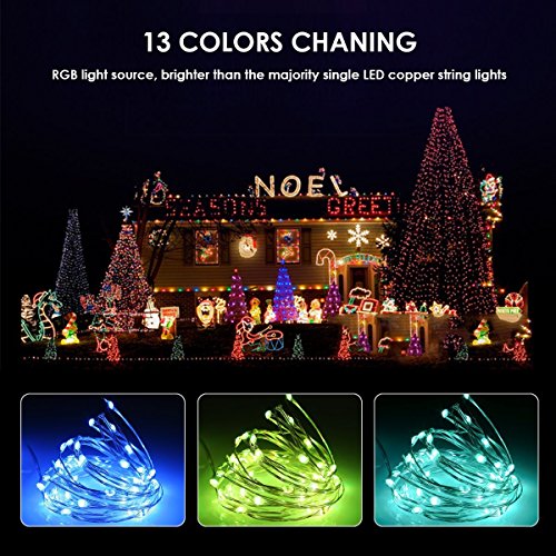 - 13 MULTICOLOR LED STRING LIGHITS: Color changing twinkling fairy lights, have 13 different lighting colors to change(red/green/blue/yellow/purple...), perfect ornaments for decorationg your bedroom, garden, patio, ect. set the right mood on any occasions like wedding, gathering, parties and add more dynamic atmosphere on festivals like Christmas, New Year party and more