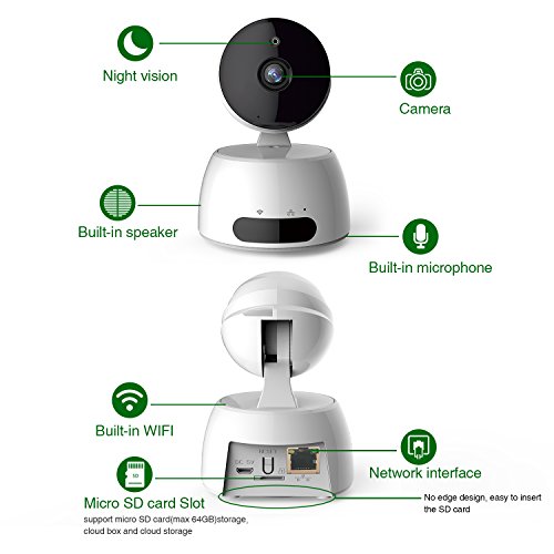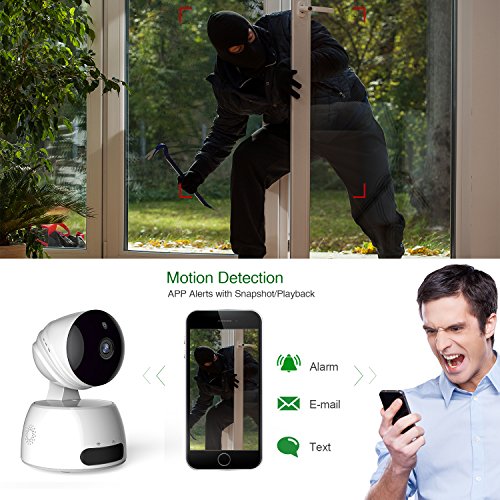 - Motion detection and 2-way audio: intelligent motion detection, 2-way voice built-in mic and speaker; App alerts with snapshot and record (SD card required) to your mobile device and you can immediately warn the invader with the speaker