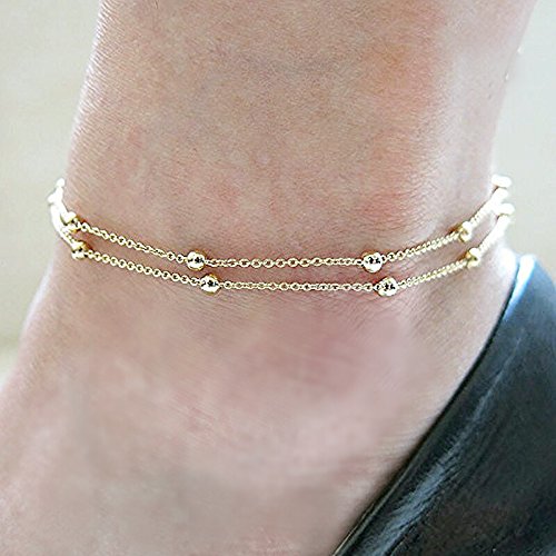 -. Title : 足首のおしゃれ 2連Wチェーン シンプルデザイン アンクレット Anklet(20cm+アジャスター7cm)シンプル&エレガント