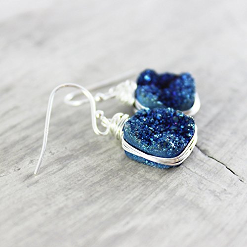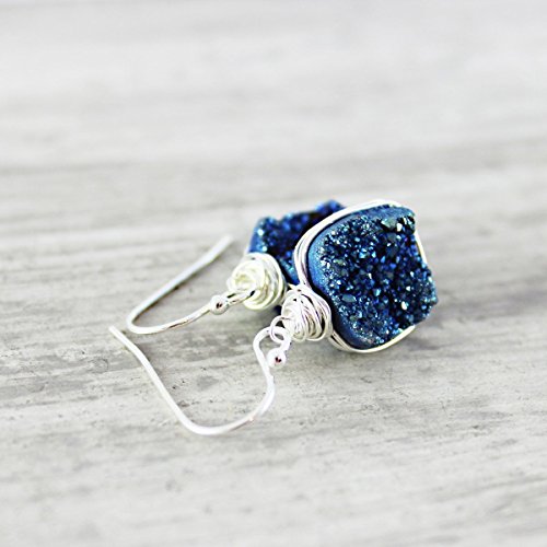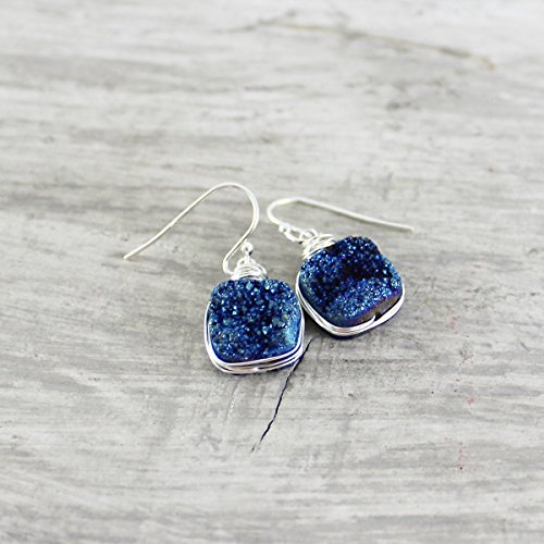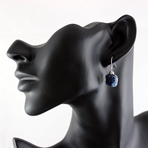 -. Title : Dark Blue Druzy Quartz Sterling Silver Earrings