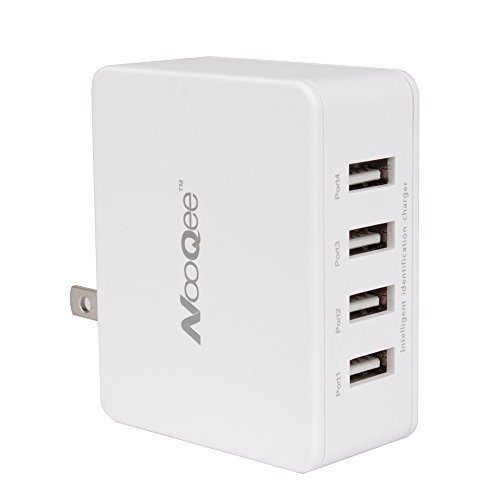 NooQee 25W 5A 4-Port USB Charger USB Travel Wall Charger Charging Station with Foldable Plugs for iPhone,Samsung,iPad,Tablet and More (White)