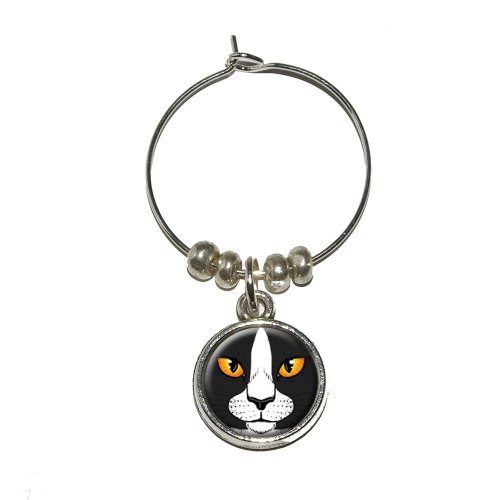 -. Brand : Graphics and More -. EAN : 0719926504829 -. Feature : Unique and functional super awesome wine/drink charm / Includes the urethane encased design on both sides of the metal charm / Approximate size of charm is 15mm / Charm is sold individually / Sorry, wine is not included. :-) -. Label : Graphics and More -. Manufacturer : Graphics and More -. MPN : CHARM_WINE_7361 -. PackageQuantity : 1 -. PartNumber : CHARM_WINE_7361 -. ProductGroup : Kitchen -. ProductTypeName : KITCHEN -. Publisher : Graphics and More -. Studio : Graphics and More -. Title : Black and White Cat Face - Pet Kitty Wine Glass Charm Drink Stem Marker Ring -. UPC : 719926504829