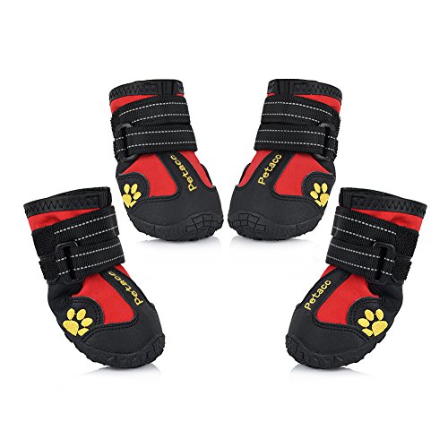 -. Title : Petacc ペット用靴 犬用レインブーツ 反射テープ シューズ 足首調節可 滑り止め 防水 雨靴 肉球保護 散歩 アウトドア 小型犬 中型犬 大型犬 前後4足各セット