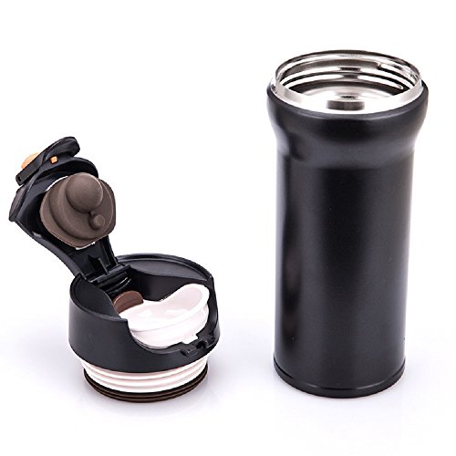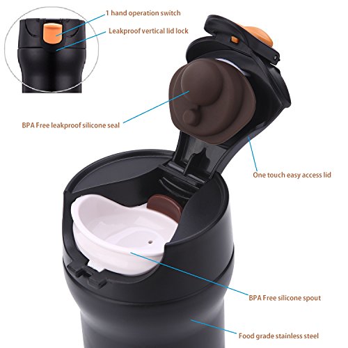 WALJIN Vacuum Insulated Stainless Steel Travel Mug with Easy-Clean Lid,360ml (Black)