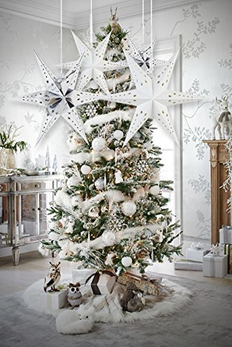 SUNBEAUTY Pack of 3 White Six Angle Paper Star Lanterns Window Decor Holiday Crafts Christmas Ornaments Tree Decor (White)