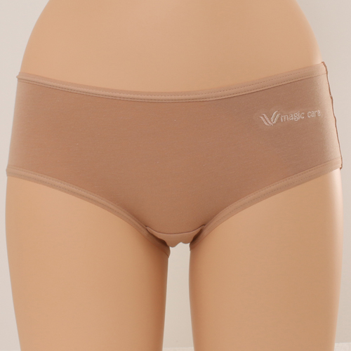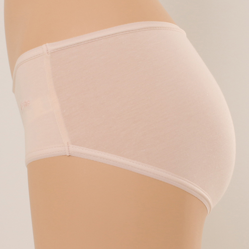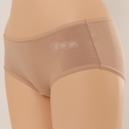 속마찌 부분에 바이오 세라믹 소재를 사용하여 생리통 완화 기능이 있으며 허리둘레와 다리둘레에는 부드러운 터치의 얇은 테이프를 사용하여 조임을 최소화 하였다.