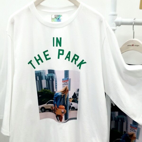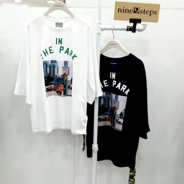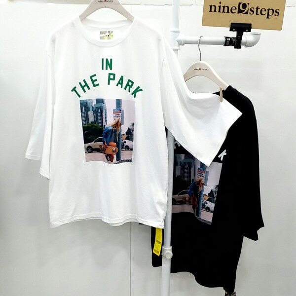 세련된 프린트가포인트된 칠부소매 티셔츠입니다