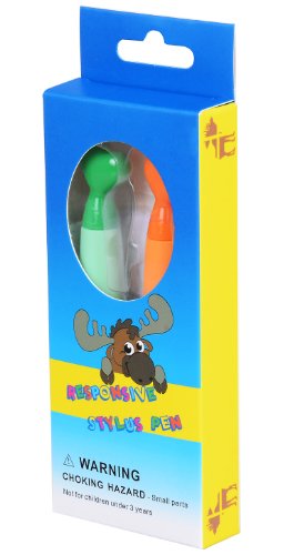 Bundle of 2 kids stylus pens with cute, cheerful and educational theme - compatible with any capacitive touch screen smart phones and tablets - iPhone, iPod, iPad and Galaxy etc