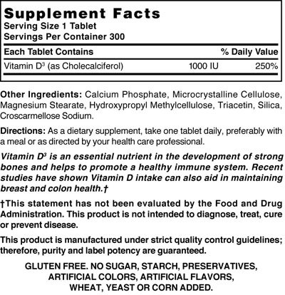 Nature's Blend Vitamin D3 1000 IU 300 Tablets