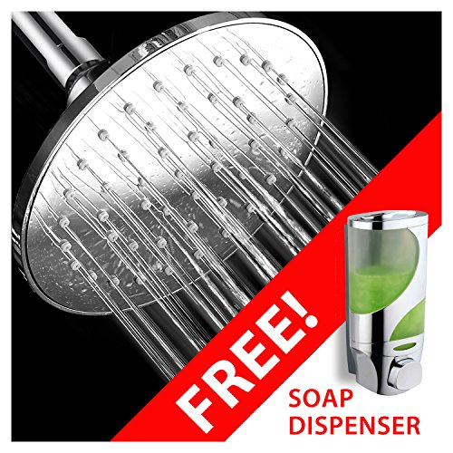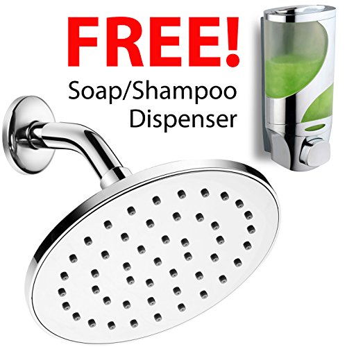 Hydroluxe Super-Value Pack! 6-inch Rainfall Shower Head with Hydro Blast Technology for High Power Water Flow Performance PLUS Wave Luxury Soap / Shampoo / Lotion Modular Design Shower Dispenser