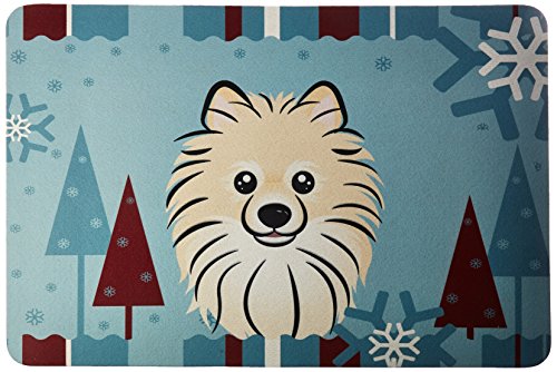 Caroline's Treasures BB1703JCMT Winter Holiday Pomeranian Kitchen or Bath Mat, 24 by 36", Multicolor