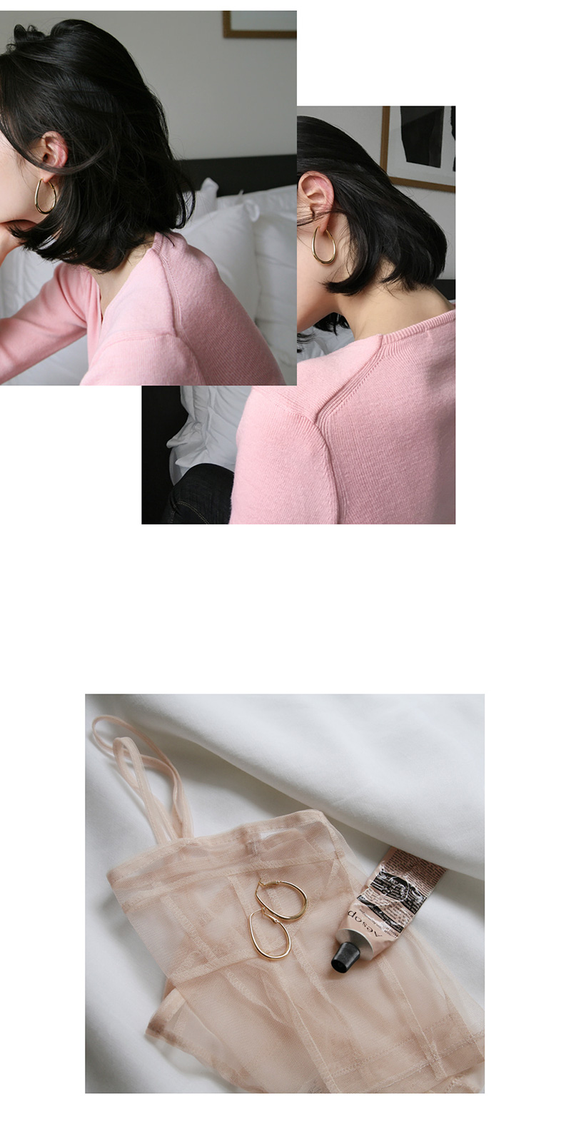 클래식하면서도 페미닌한 분위기가 감도는 감각적인 이어링입니다.