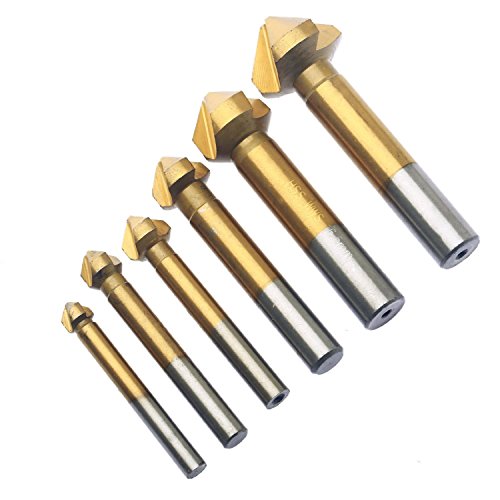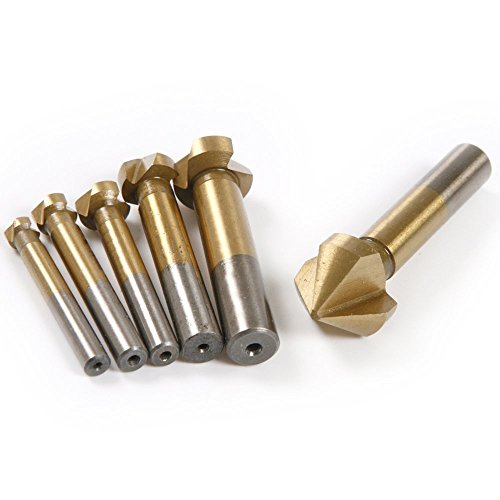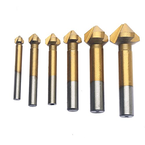 CSLU-Tool 6 Pcs 90 Degree 3 Flute Titanium HSS Chamfer Chamfering Cutter Drill Bits End Mill Countersink