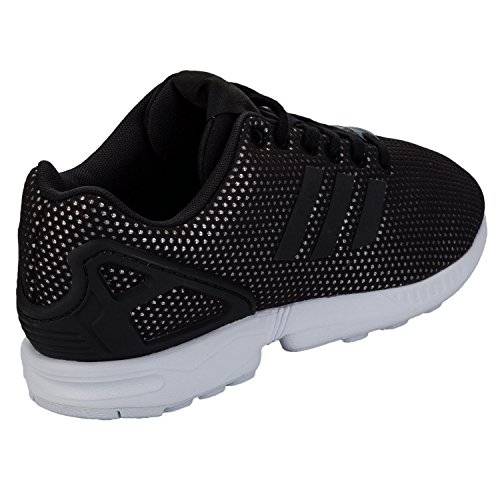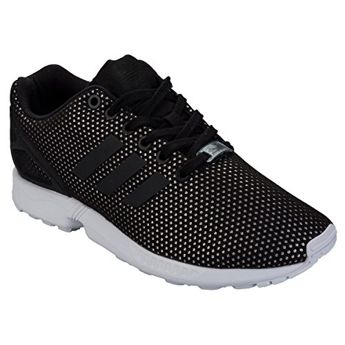 Studio : adidas Originals Publisher : adidas Originals Binding : Shoes Product Description Women's adidas Originals ZX Flux Trainers in Core Black.- Breathable mesh upper.- Lace-up fastening.- Padded tongue and collar.- Metallic silver dots throughout.- Comfortable textile lining.- Welded TPU 3-Stripes.- Iconic moulded adidas ZX Flux heel cage.- TORSION SYSTEM for midfoot integrity. - Compression moulded EVA midsole for lightweight cushioning.- Textile and synthetic upper, Textile lining, Synthetic sole.- Ref: S76607 0