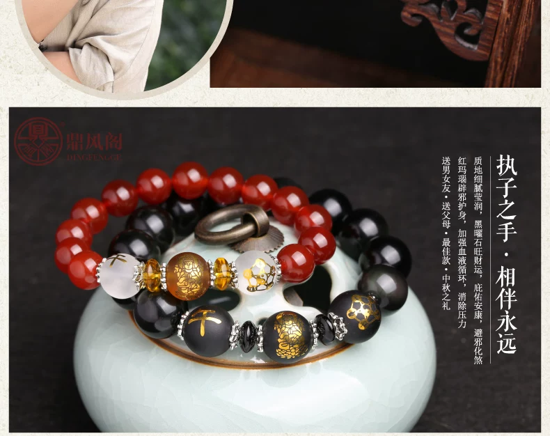 Material: natural obsidian, natural red agate
