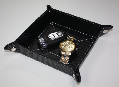 Carbon Fiber Black Mens Key Phone Coin Bedside Box Storage Tray Valet Change