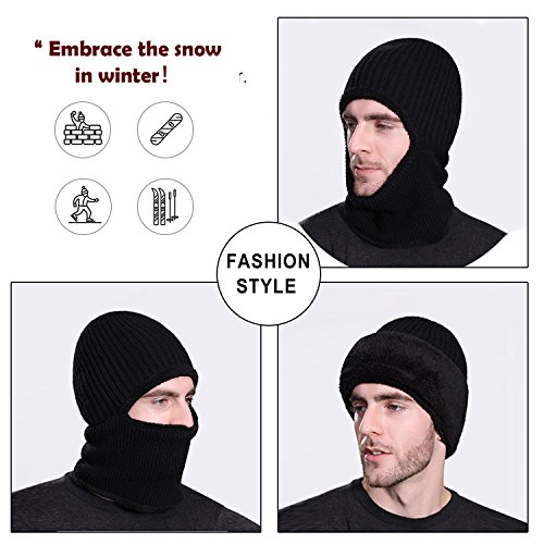 MOCOFO Unique Slouchy Beanie for men Skull Warmer Wind-protection Hat Winter Face Cover Knit Skully Hat Ski Cap in 2 Colors