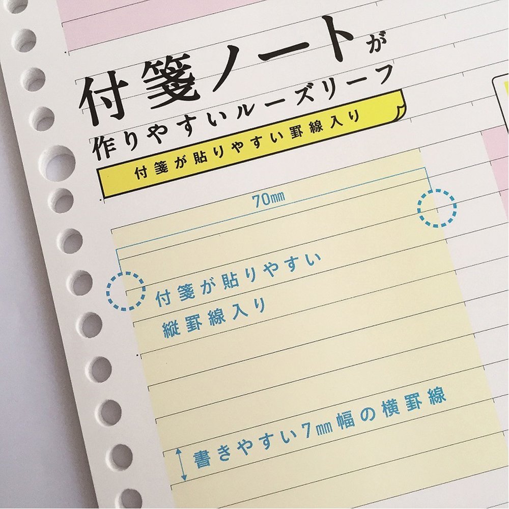 Loose leaf comes with a vertical ruled line designed to make sticky notes easily.