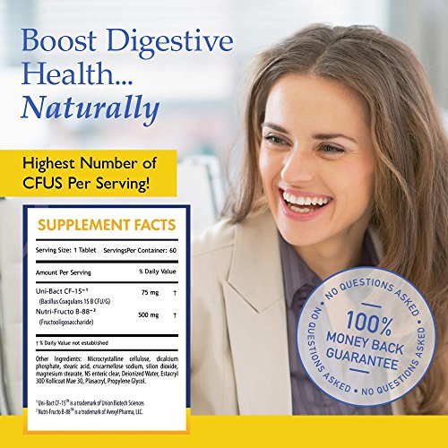 HIGHEST NUMBER OF CFUS PER SERVING AND 2X MORE THAN SIMILAR PROBIOTIC SUPPLEMENTS for Better Digestive Health, Immunity and Bowel Regularity. 60 Tablets - 60 Day supply - Comes with a 100% NO-QUESTIONS-ASKED Moneyback Guarantee!