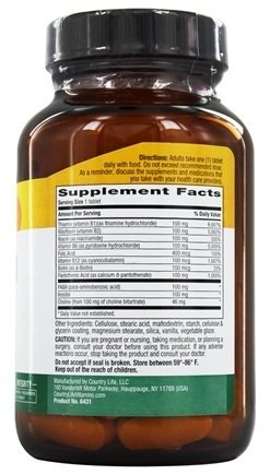 -. Title : COUNTRY LIFE VITAMINS HI-B COMPLEX,100 MG,TR, 100 TAB