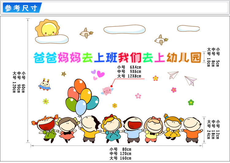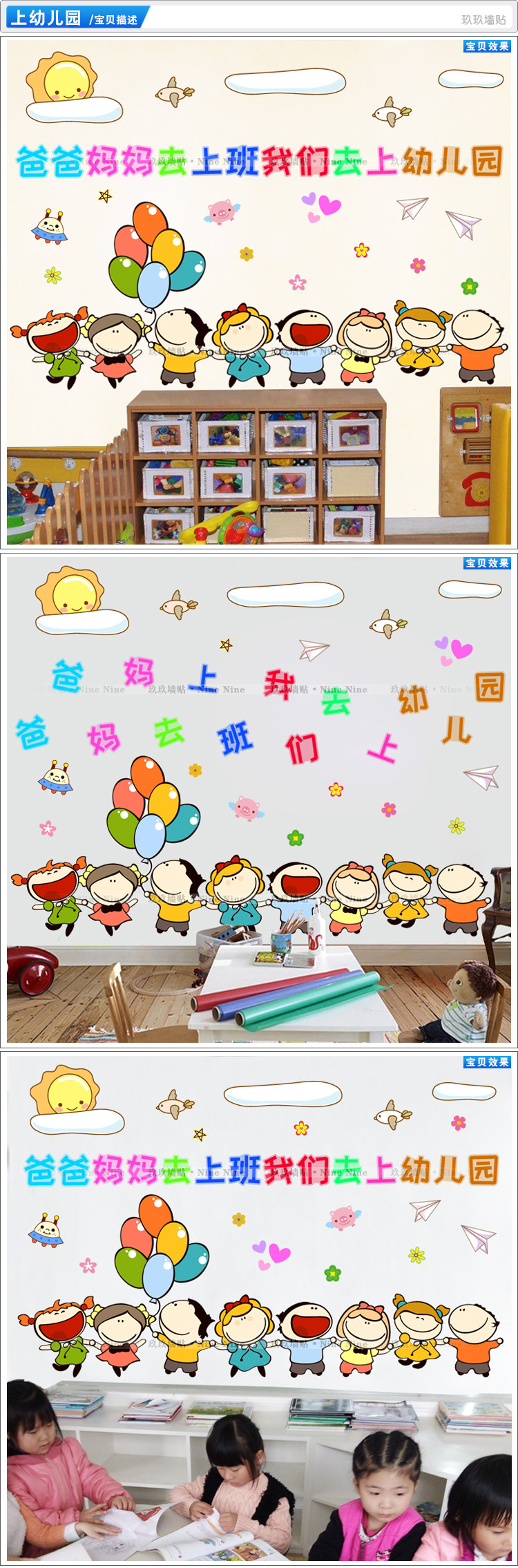 幼儿园托儿所班级教室装饰墙贴小朋友手拉手上幼儿园气球贴纸贴画