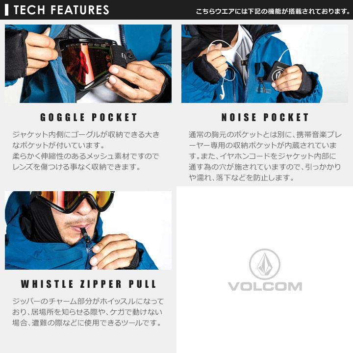 印象的なフロントロゴが、シンプルなボディーに栄え一味違ったカジュアルなスノーウェアのコーディネートが楽しめるデザインも注目ポイントです。