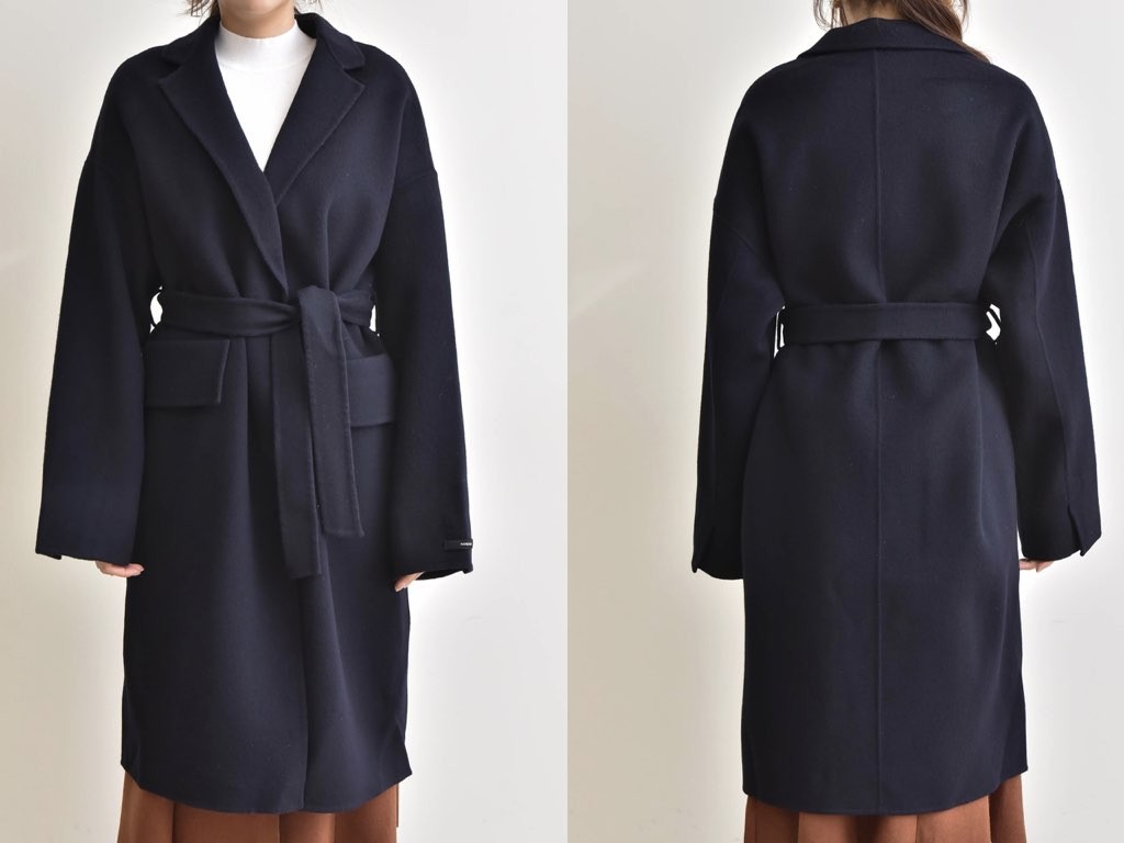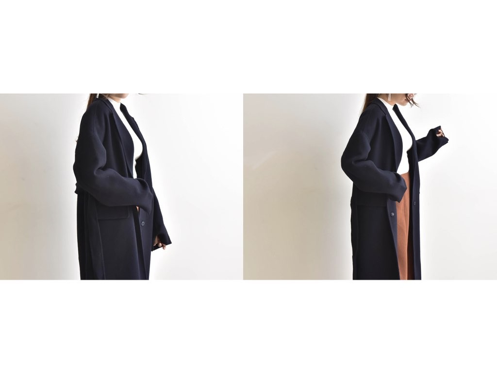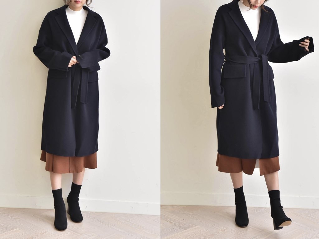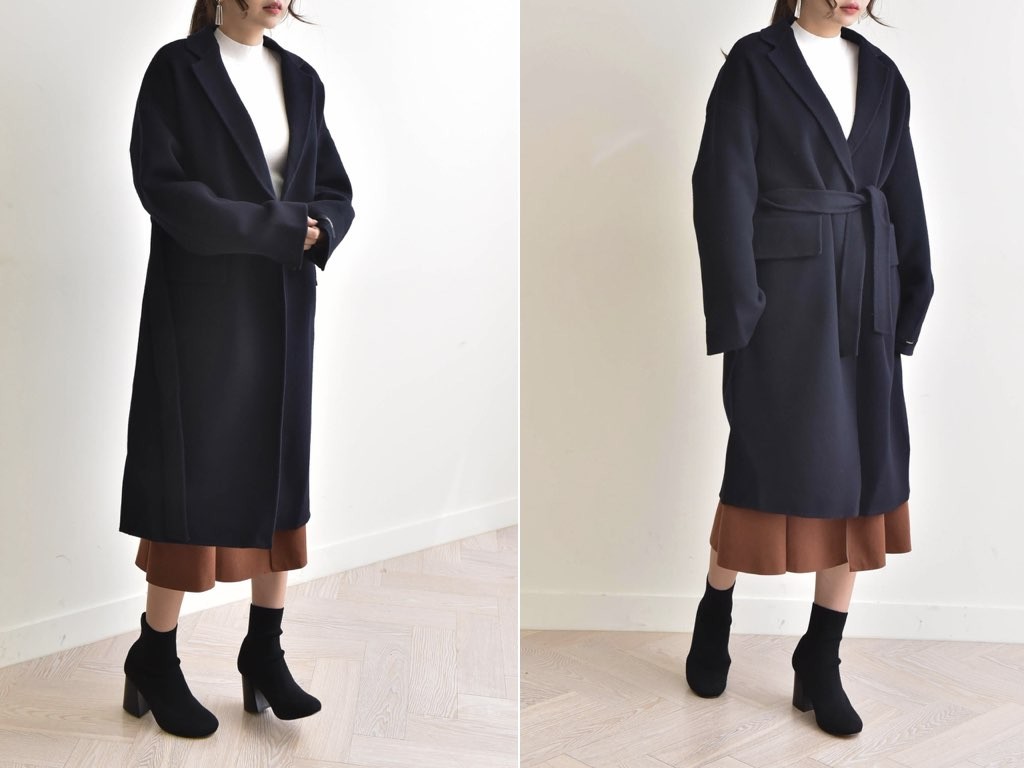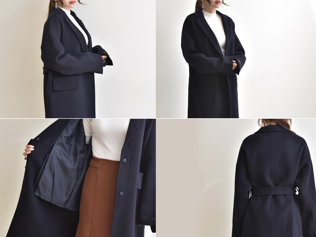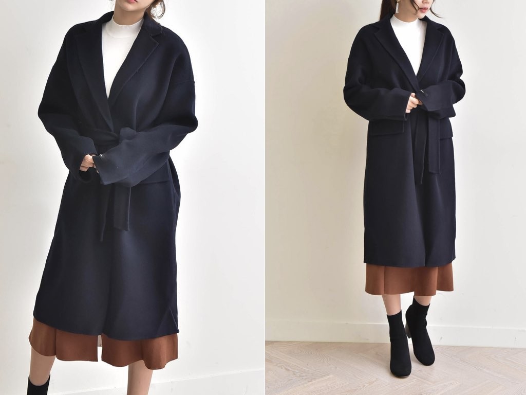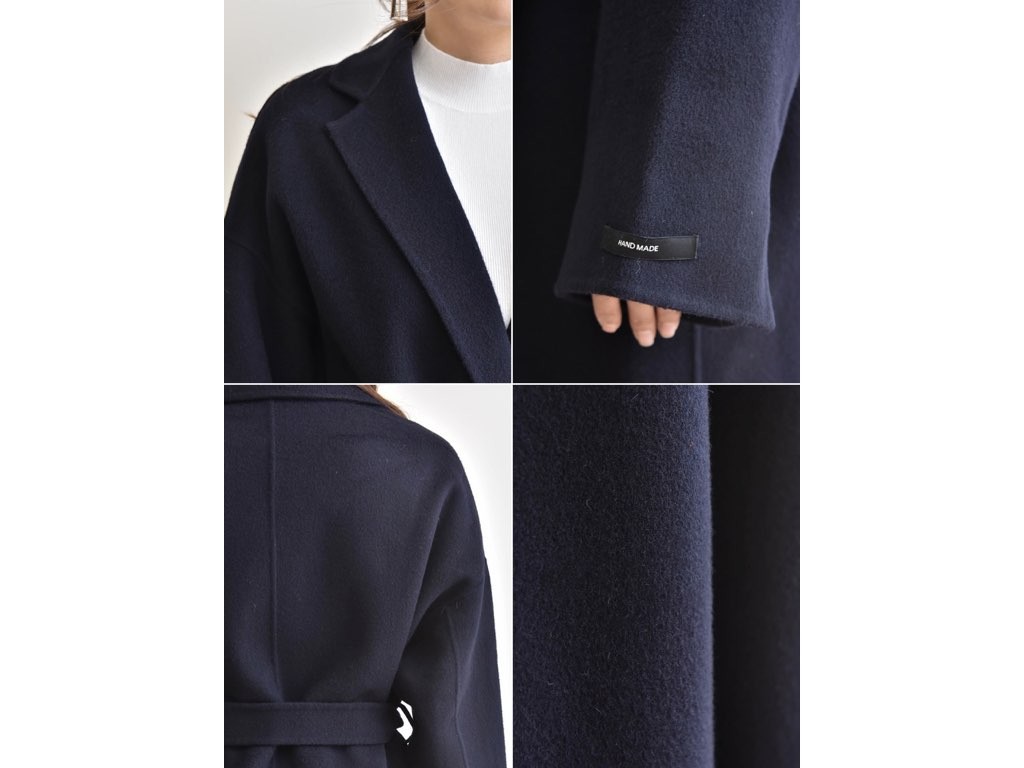 とても上品なハンドメイドのオーバーコートです。さらりと着流せる長め丈です。これ一枚で旬な着こなしが実現しますね。インナーやボトムスとの合わせ方で、ファッションのバリエーションが広がります。大人カジュアルにも、通勤スタイルにて最適なコートです。商品は、とても丁寧なつくりとなっています。1.基本情報色:ネイビーサイズ:Free素材:-製造国:Korea2.サイズ情報肩幅:60cm身幅(胸断面):60cm 腕の長さ:52cm 着丈(前):106cm (サイズは計る方法に応じて±2〜3cmの誤差があります。ご了承お願い致します)モデル着用サイズ:F※着用モデル(163cm、体重47kg、足のサイズ24.5cm)3.その他の情報厚み:中間透け感:なし伸縮性:なし裏地:あり洗濯方法:ドライ(クリーニング)