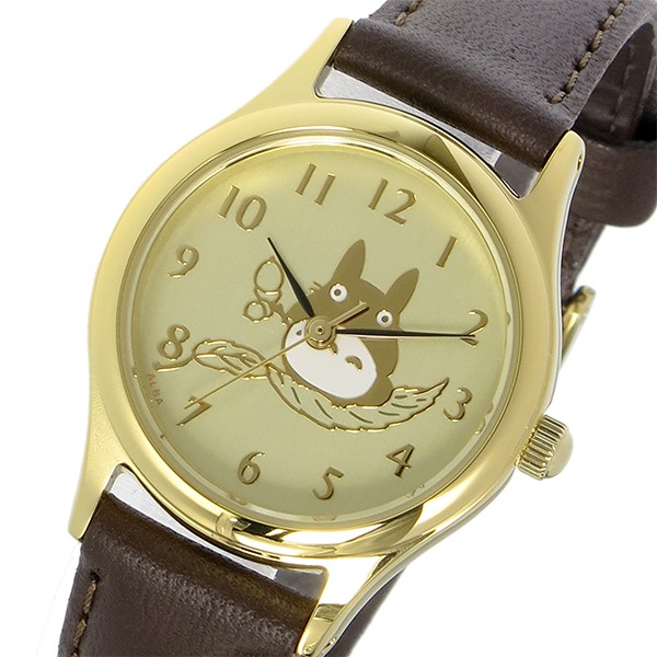 セイコー SEIKO アルバ ALBA となりのトトロ クオーツ レディース 腕時計 ウォッチ ゴールド  商品仕様:(約)H25×W25×D7mm(ラグ、リューズは除く)、重さ(約)19g、腕周り最大(約)15.5cm、最小(約)12cm ステンレス(ケース)、レザー(ベルト) 専用ケース、保証書、取扱説明書