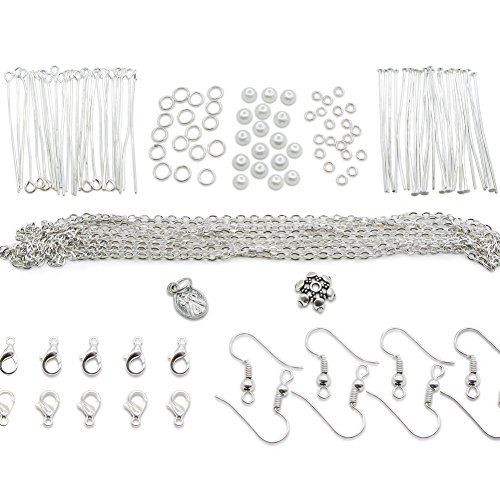 TOAOB Silver Jewellery Making Starter Kit Findings Beads Chains Clasps Earring Hook Jump Rings Pins Accessories