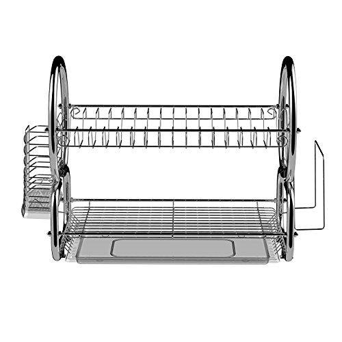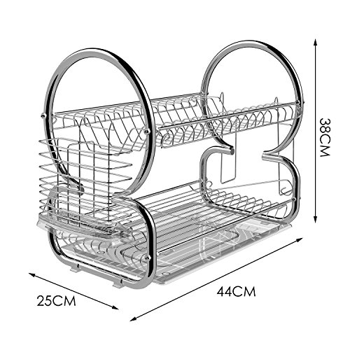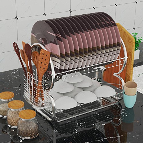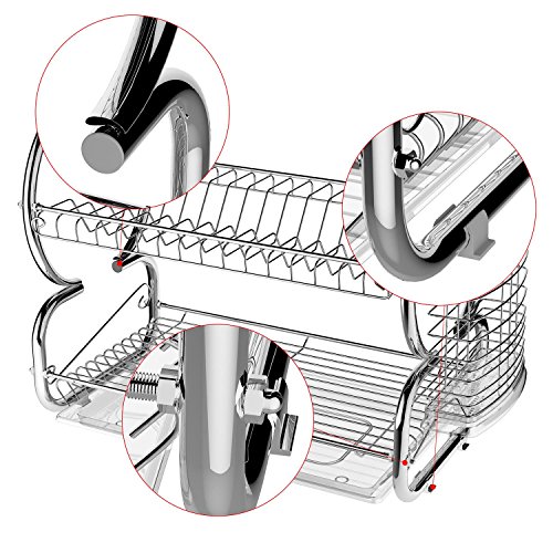 Fashine 2 Tier Dish Rack Stainless Steel Kitchen Dish Drying Rack with Removable Drainboard Set & Cutlery Holder