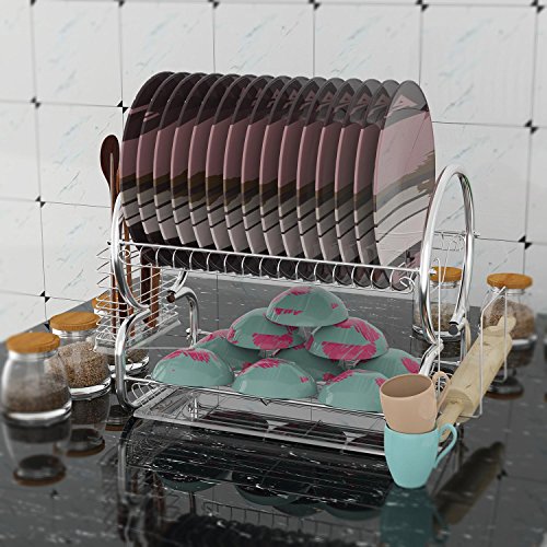 High-Capacity Storage: The dish drainer rack has sloped sides which is ideal for holding plates can put 16 dishes while the flat bottom rack can be used for mugs and more than 24 bowls