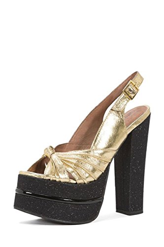 jeffrey campbell kitaen Gold Leather Black Glitter Open Toe Platform Sandal
