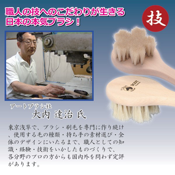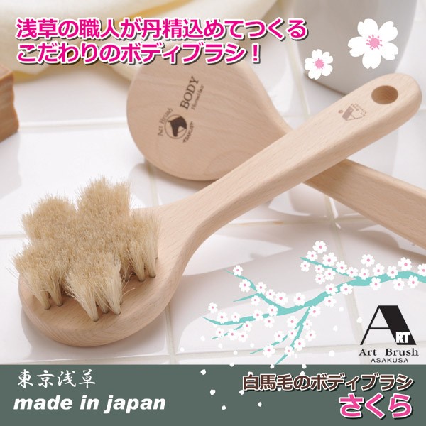 【商品名】白馬毛のボディブラシ 「さくら」 天然毛 アートブラシ社/日本製 (入浴グッズ)