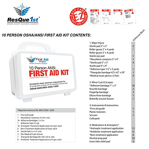 - Title : ResQue1st 10 Person ANSI Complete First Aid Kit · Emergency Preparedness Kit · Business · Home · Camping · Boat · Outdoors · Sports