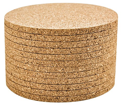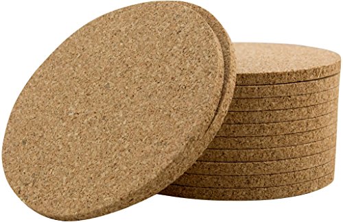 Cork Coasters (Round) - Set of 12 - Light brown - Eco-friendly - Easy to clean - Absorbent - 4 Inch Diameter - 1/4 Inch Thick - Protect your table tops, counters and bar counters from ring marks