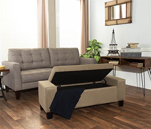 -. Feature : Tapered legs / Flip top that reveals storage area / Upholstered microfiber / Tufted / Weight capacity: 200 lbs.