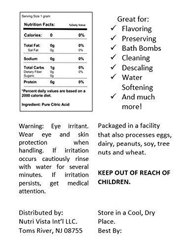 Nutri Vista Citric Acid 100% Pure- Food Grade Non GMO