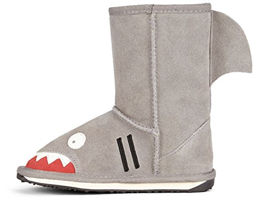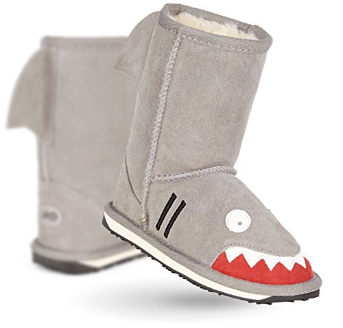 Kids love EMU Little Creatures boots. Soft Merino wool, a durable sole, teeth and a fin! What more does a little boy need in a boot?