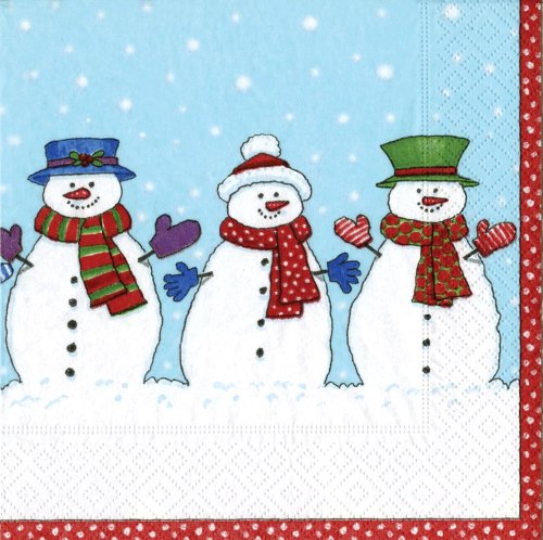 -. Feature : Pack of twenty 5-inch paper cocktail napkins by caspari / Made of triple-ply tissue printed with non-toxic, water-soluble dyes / Whimsical snowmen decorated for the season by kate mawdsley / Disposability reduces clean-up time so you can enjoy more time with friends and family / Biodegradable and compostable, made using environmentally-conscious raw materials / Pack of 20 paper cocktail napkins, printed in Germany / Napkins are made of triple-ply tissue printed with non-toxic, water-soluble dyes; biodegradable and compostable / Add beauty to every part of your life with Caspari's coordinating gift cards, gift wrap/bags, and top quality candles / Each individually folded cocktail napkin measures 5-inches square and opens to 10-inches square, pack comes wrapped in cellophane