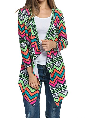 -. Title : Zeagoo Women Aztec Long Sleeve Open Front Geometric Asymmetrical Hem Cardigan