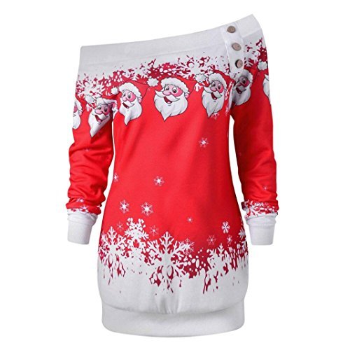 -. Title : Charberry Women Merry Christmas Santa Snowflake P.R.Int Tops Long Sleeve Blouse (Red M) [並行輸入品]