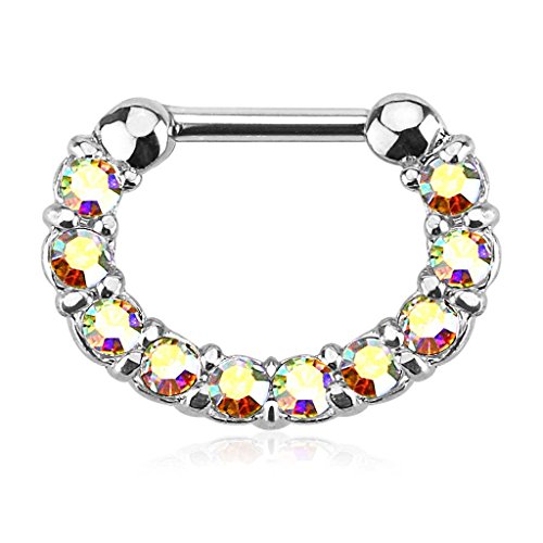 Piercingfaktor Universal Piercing Septum auch fur Tragus Helix Ohr Nase Lippe Brust Intim - Schild Clicker Ring 5 Cubic Zirkonia