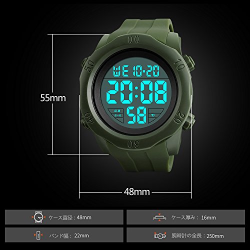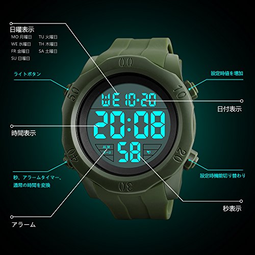 원본상품명: R-timer(ア?ルタイマ?) 腕時計 メンズ デジタル 防水 多機能 スポ?ツウォッチ led 時計 ストップウォッチ アラ?ム機能 12/24時刻切替え 日付表示 (ア?ミ?グリ?ン)