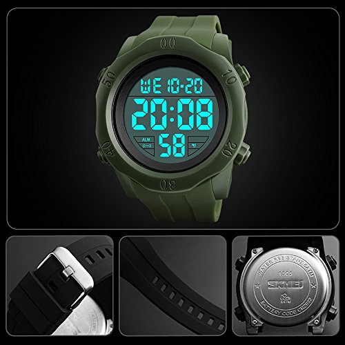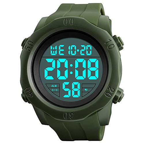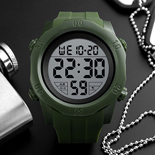 R-timer(R 타이머) 손목시계 맨즈 디지탈 방수 다기능 스포츠 워치 led 시계 스톱워치 알람 기능 12/24시각 전환 날짜 표시 (군대 그린)